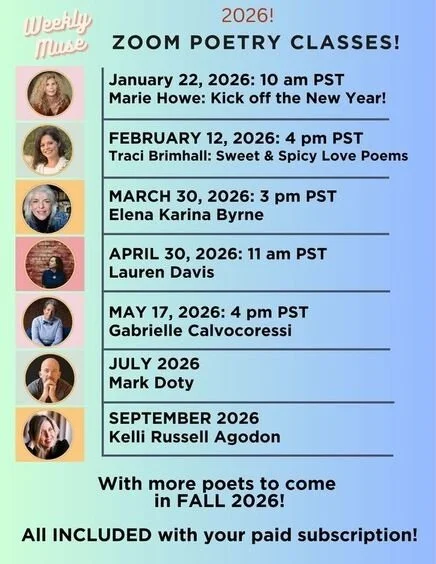 The in-class assignments, inspired by poems and screenplay excerpts, will reveal how poetry and film share key vantage points of discovery, using transformative active ingredients of language, image, and voice, thereby igniting unexpected ways to re-see your work. The screenwriter’s adage: there is no plot without character. Cinematic flashbacks, dialogues between the self and other––monologues, epistolary letters, personas, and declarations all defy gravity, and yet, if the work of art does its job, the poem will also be grounded by a lively understanding of what makes us human. Like a film, a poem offers a set of proposals for us to consider. These are composed of a set of scenes and actions that tell us who the principal players are and what informs their emotional truths as each moment unfolds.
